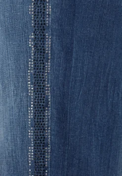 Diese Jeans von Doris Streich ist ein echter Allrounder. Das hochelastische Material liegt dank des Slim-Fit Schnitts eng an der Haut an und bietet ein Maximum an Komfort und optimale Bewegungsfreiheit. Gleichzeitig lässt sie einen im Handumdrehen eine Größe schlanker wirken und sorgt für eine schöne Silhouette. Hingucker sind die vielen Strass- und Glitzer-Steinchen in Blau und Transparent an den Seitennähten. Abgerundet wird das Modell mit Krempelsaum, 5-Pocket Taschen und einer angesagten Waschung.