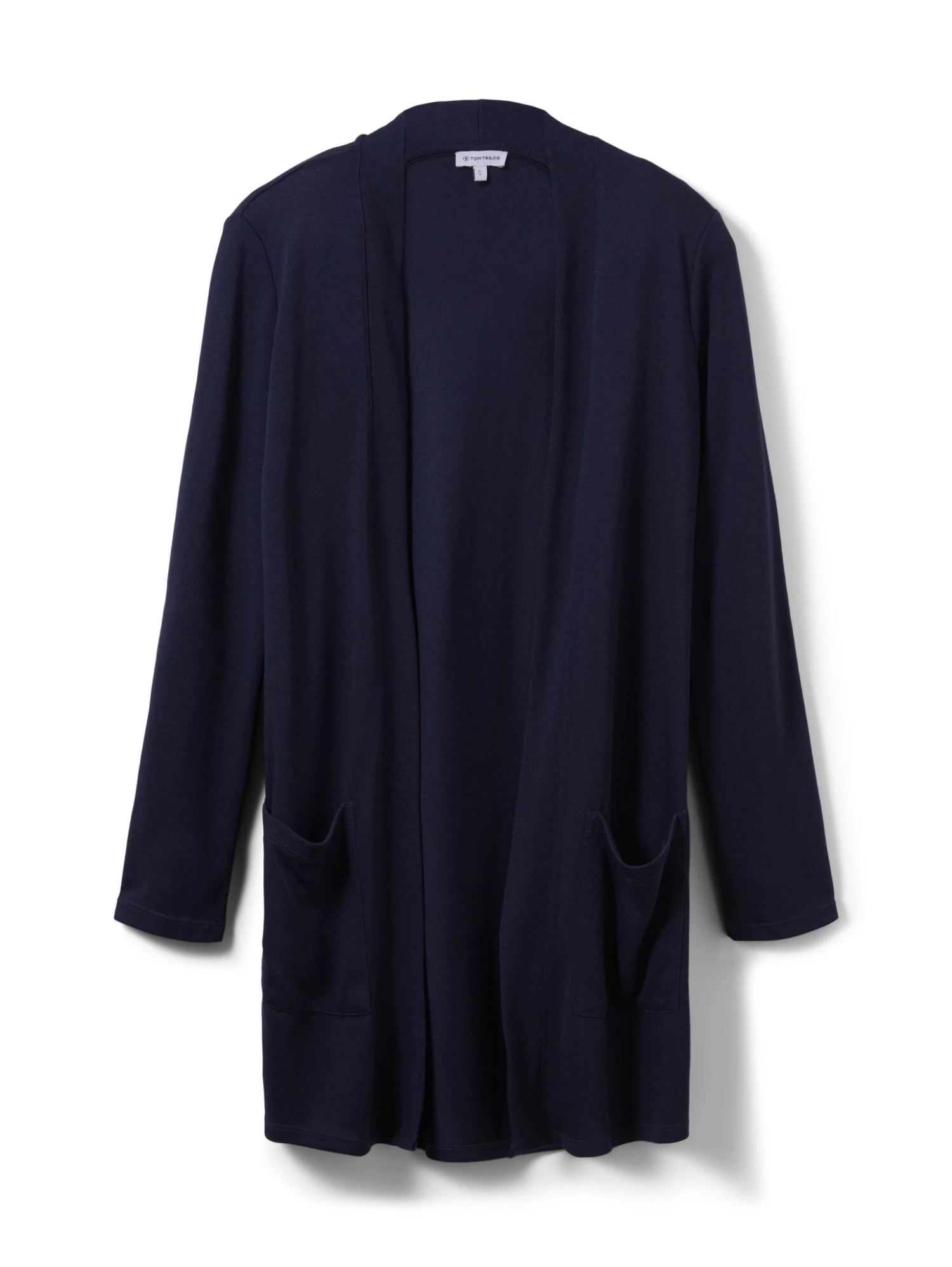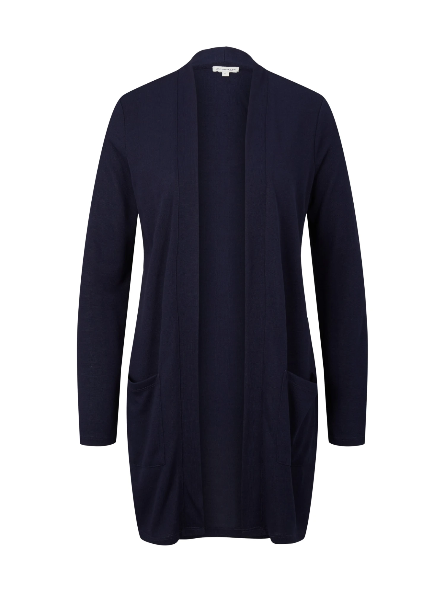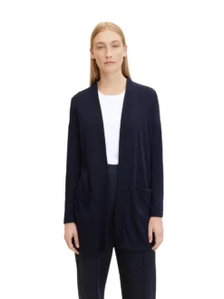 - langärmlig mit Schalkragen und nach vorne hin offen